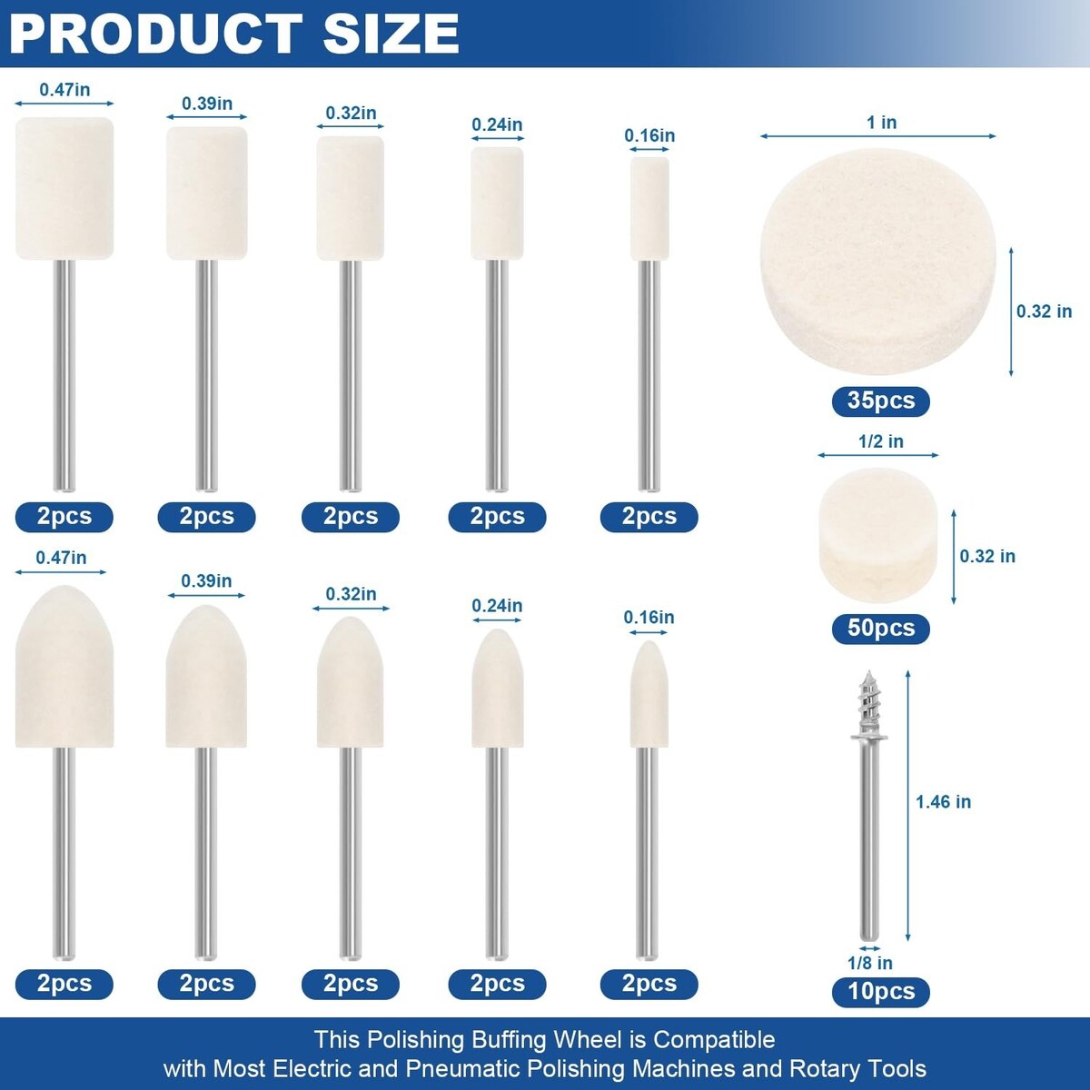 ?Ultra-Compact High-Quality Wool Fibers? 1.2K+ craftsmen validate tested, the soft and delicate wool polishing kit can be used for metal, glass and jewelry, fine polishing of ceramics and other materials, with a 1/8-inch shaft suitable for dremmel tools and universal rotary tools, easily handling any polishing project. This economical kit can meet your daily DIY needs