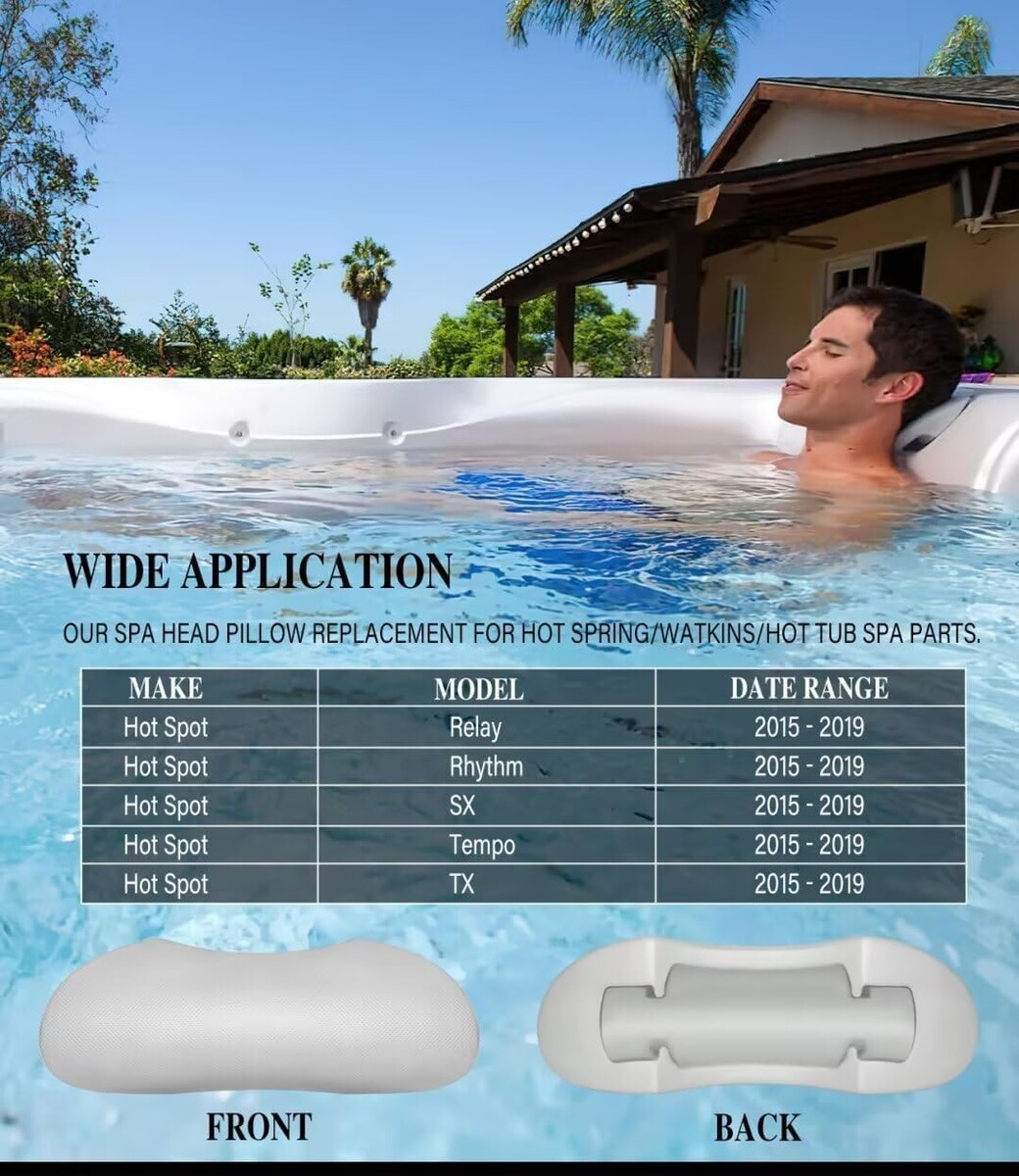 Wide Application ? Our Spa Head Pillow Replacement for Hot Spring/Watkins/Hot Tub Spa Parts. Compatible with Hotspot models (2015 - 2019): Relay, Rhythm, SX, Tempo, TX. Replaces Part number 77444.