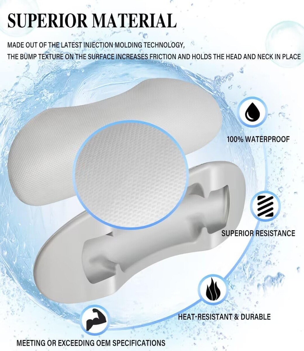 Superior Material ? Our pillows are made out of the latest injection molding technology, the bump texture on the surface increases friction and holds the head and neck in place. With 100% waterproof, heat-resistant, superior resistance, durable, meeting or exceeding OEM specifications.