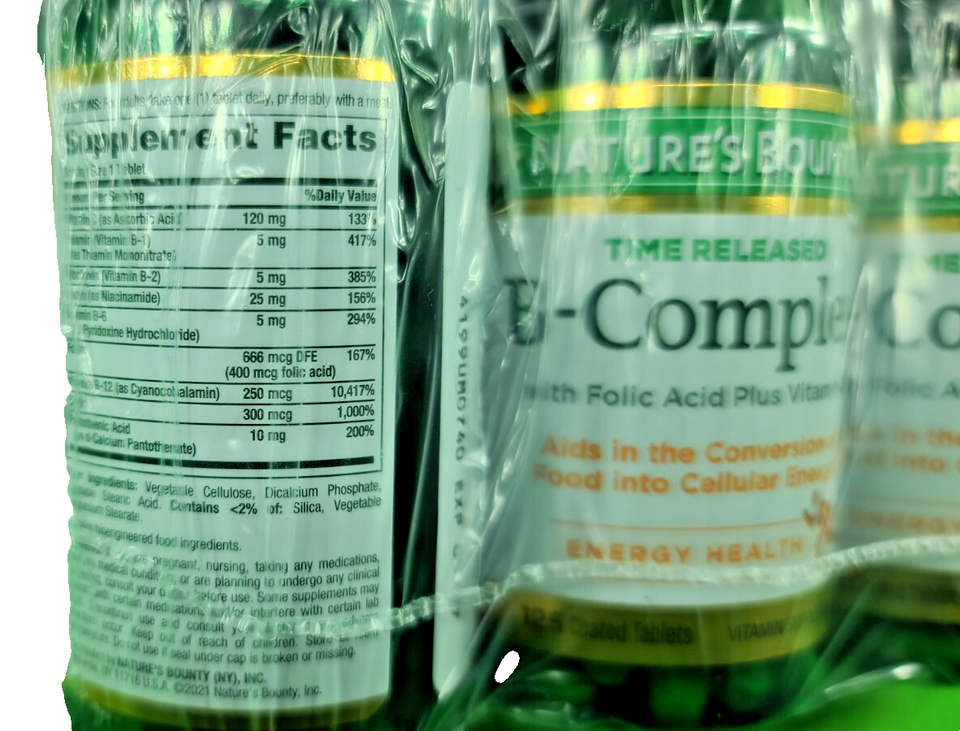 3 Pack Nature's Bounty B Complex w/ Vitamin C Folic Acid 125 New Sealed