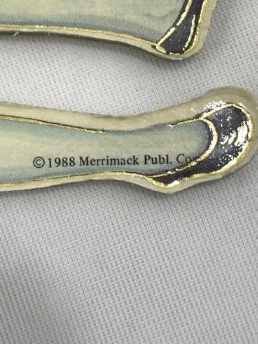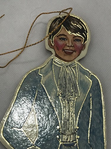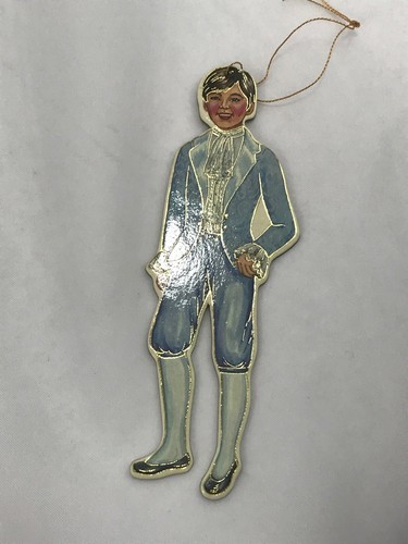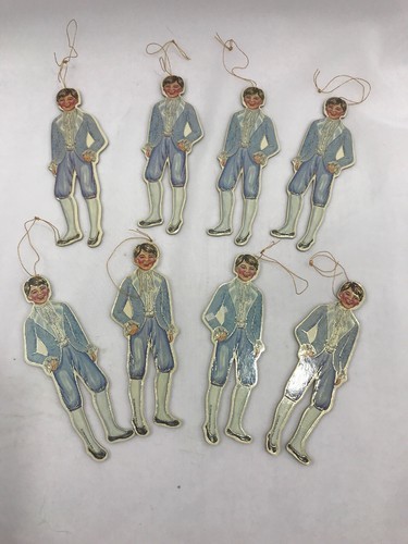 8 Merrimack Vintage 1988 Victorian Die Cut Lad Boy Christmas Ornament Tag 2 Sided. Condition is Vintage Used. Great condition with no flaws or damage. Gold hangers present. (See all photos for condition and measurements).