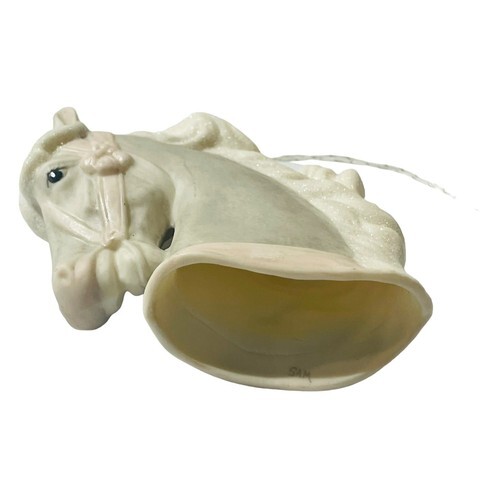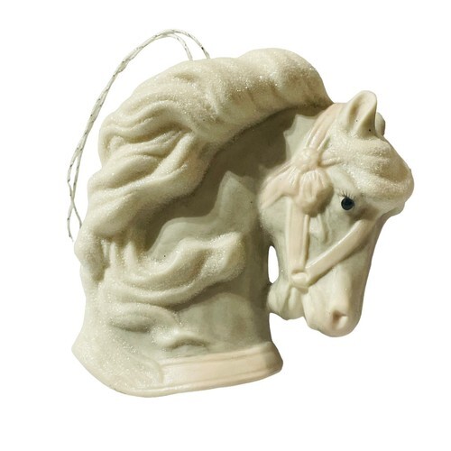 The pink color of the ornament adds a pop of color to your tree or mantelpiece and the intricate details of the horse head design are sure to impress. Whether you're a collector or just looking for a unique decoration, this ornament is sure to bring a touch of beauty to your home.