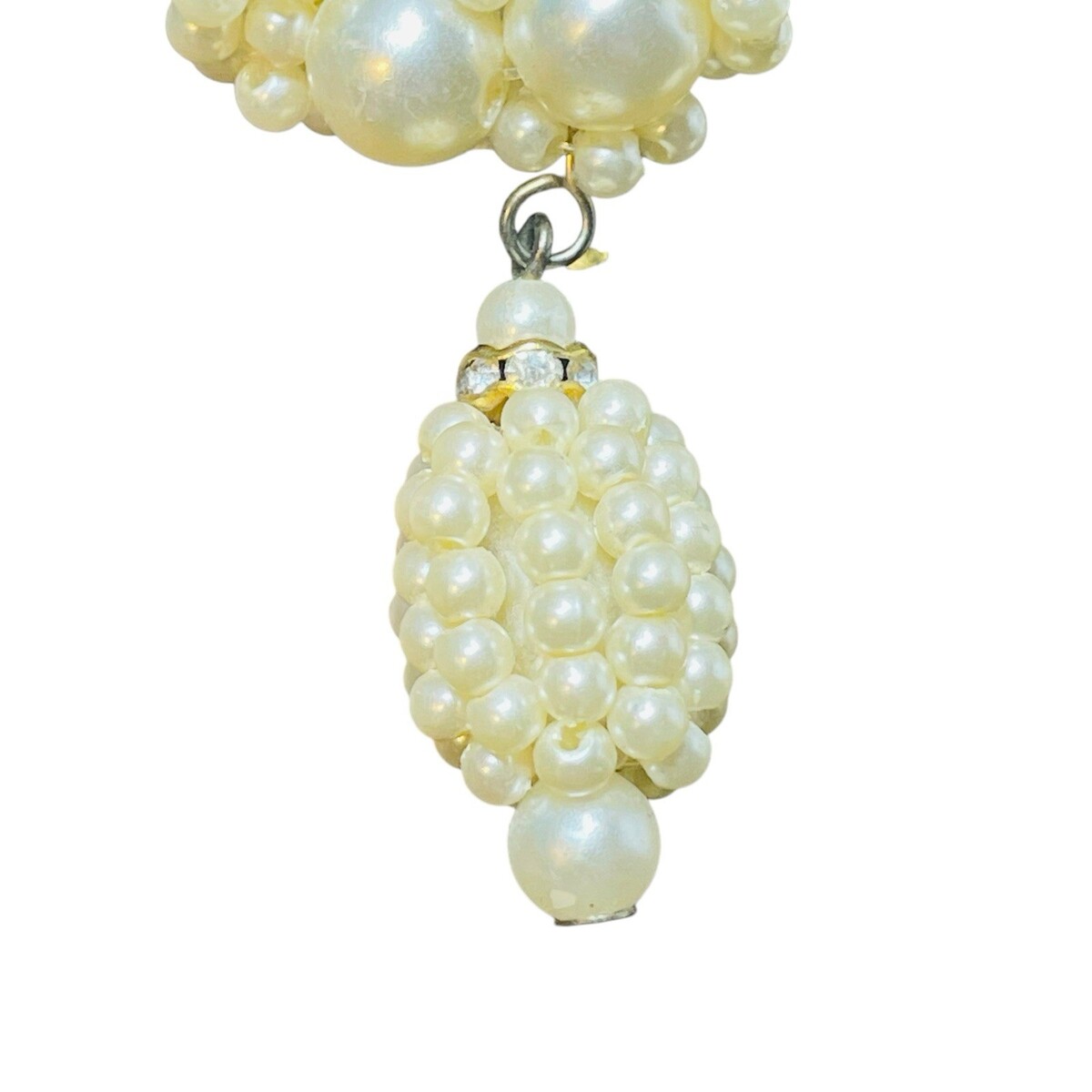 Vtg Pearl Rhinestone Beaded Clip-On Earrings Elegant Floral Drop Dangle Jewelry