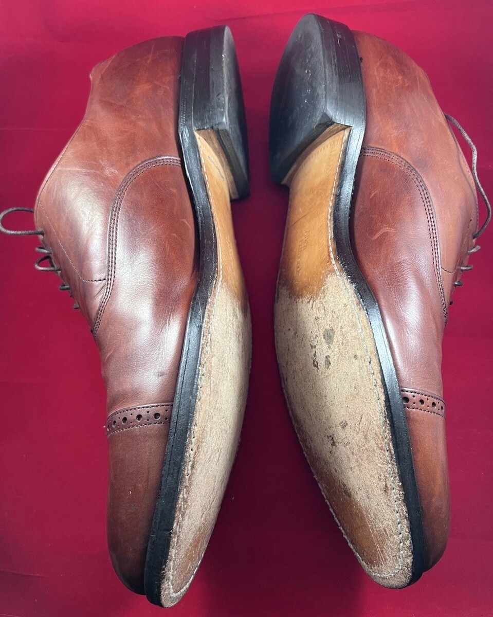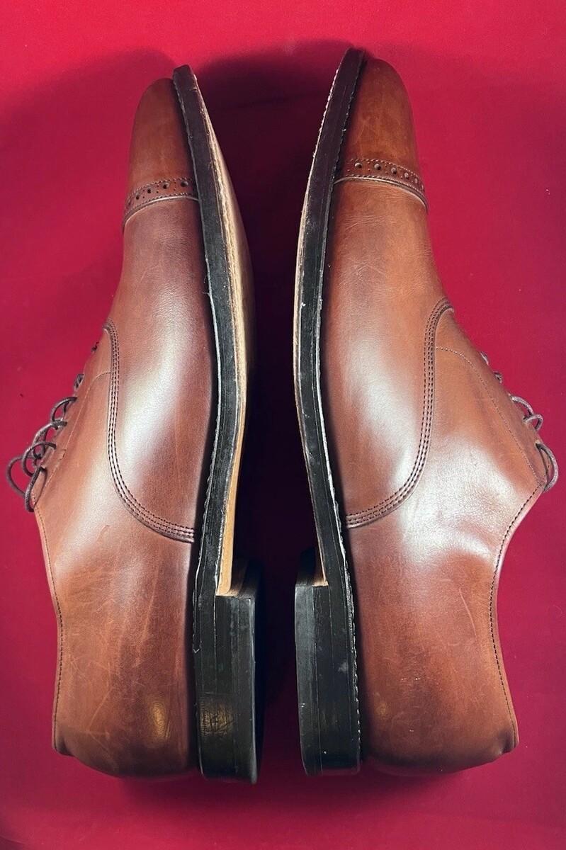 The Allen Edmonds Byron Brown shoes in size 15 are a luxurious and stylish choice for men looking for high-quality dress shoes. Part of the Byron product line, these shoes are crafted with attention to detail and design, making them a sophisticated addition to any formal or professional outfit. These shoes are sure to provide both comfort and style for any special occasion. Gently used, normal wear marks as seen in pictures.
