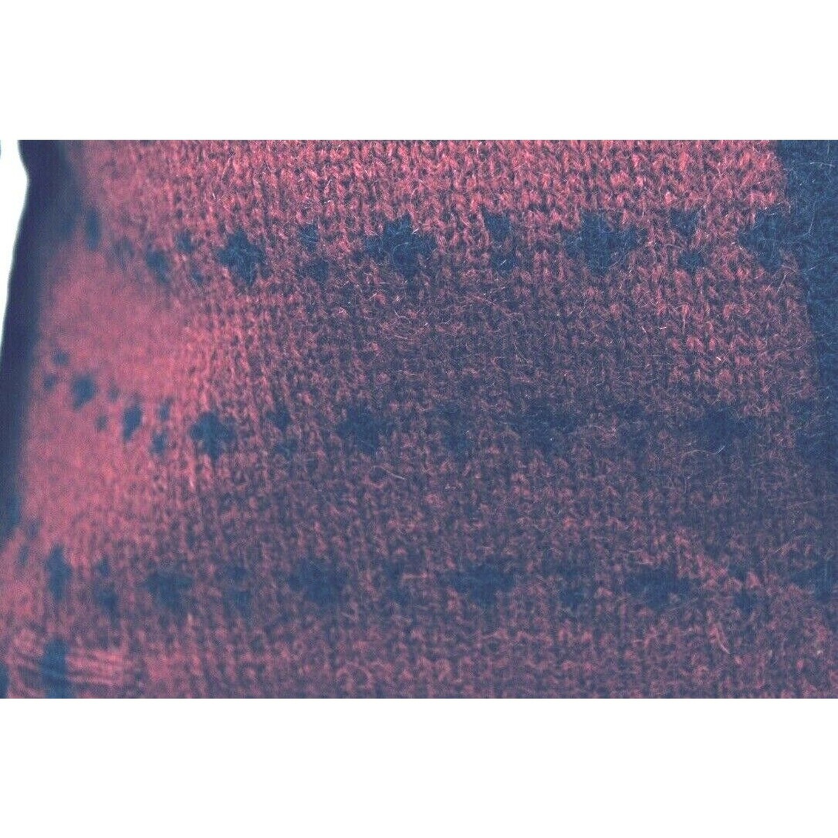 100% wool knit, puffed shoulders, silver buttons, red with navy star intarsia, 2 vertical front pockets, Made in Macau