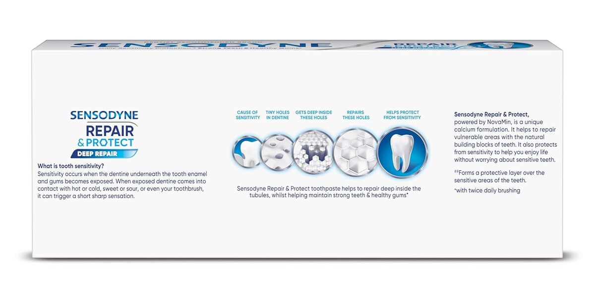 Sensodyne Repair and Protect toothpaste helps repair sensitive areas of the teeth