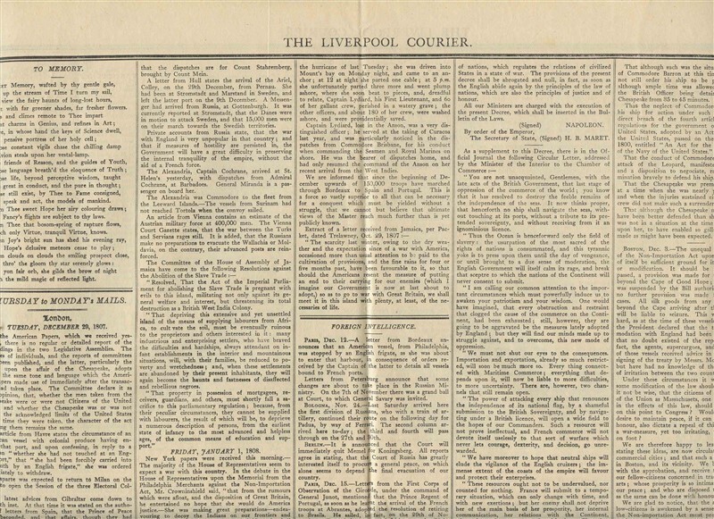 Liverpool Courier and Commercial Advertiser January 6 1808 Newspaper reprint