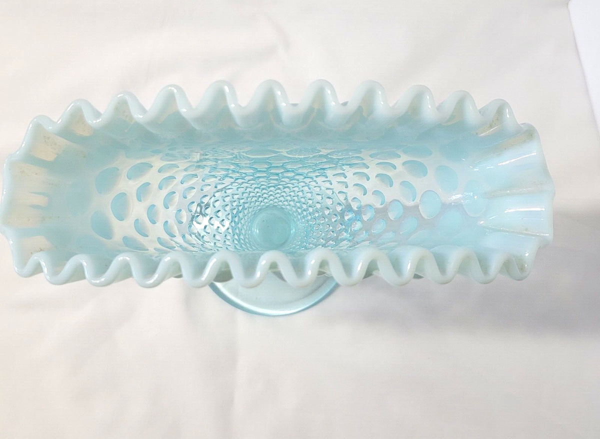 Vintage Fenton Blue Opalescent Hobnail Fan and 12 similar items