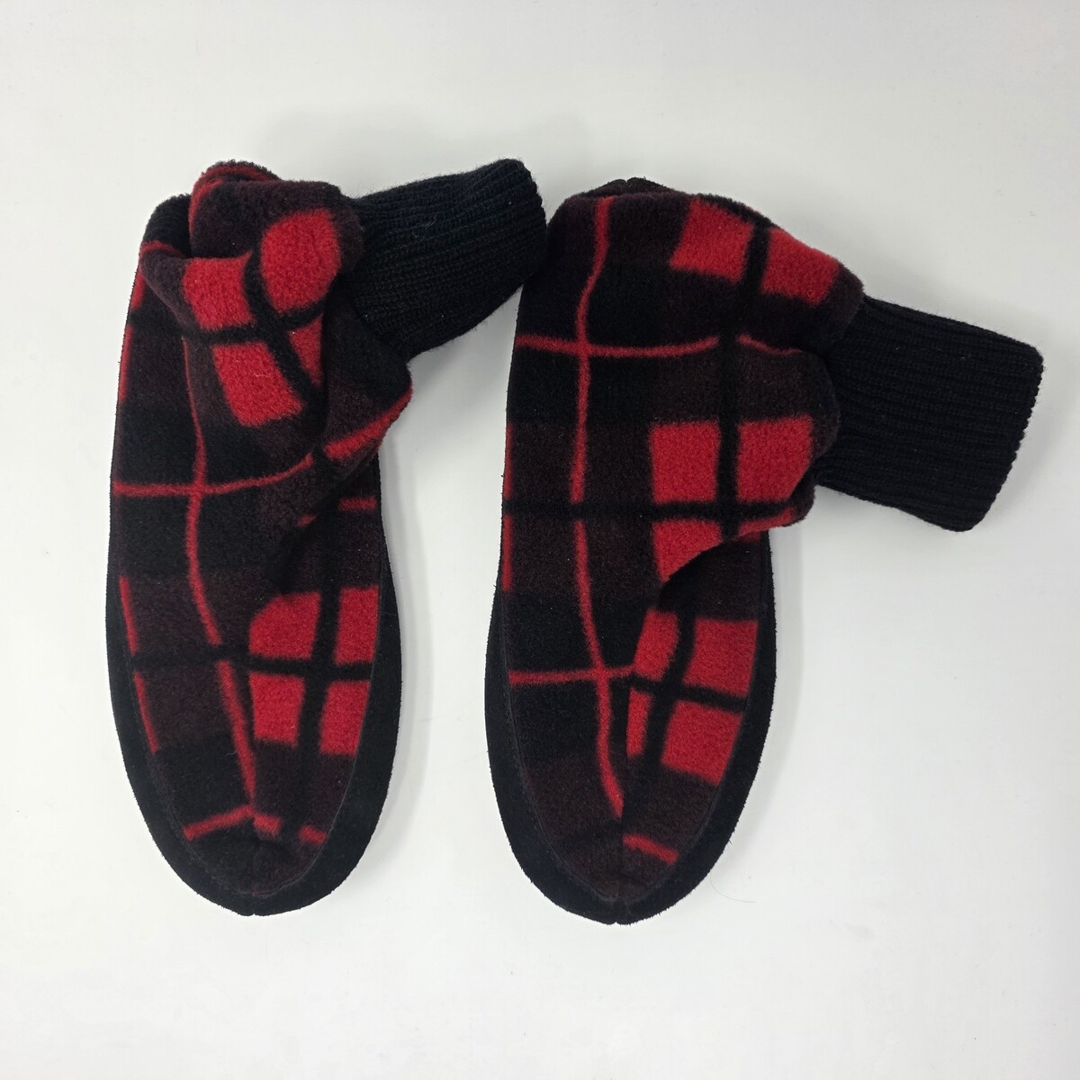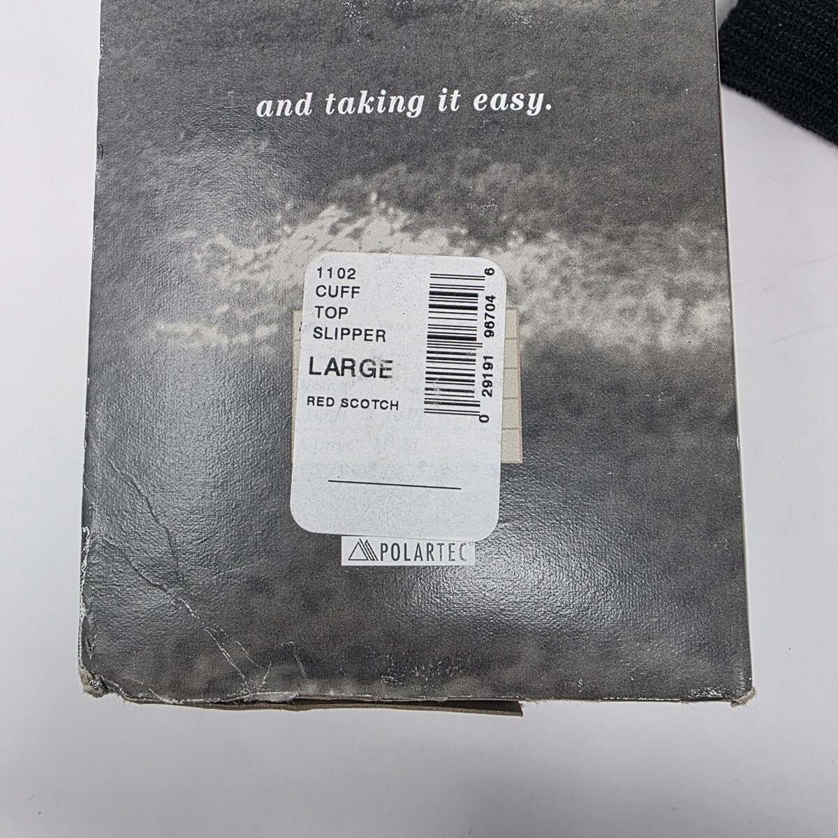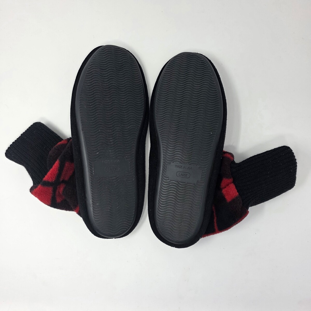 New with box Bass Women's red buffalo plaid fleece cuff Top slippers size large.