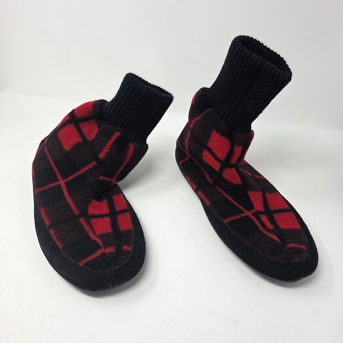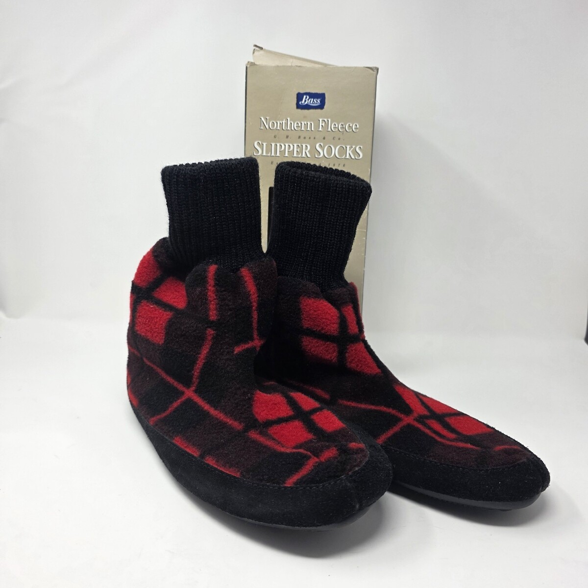 Bass Women's Northern Fleece Slipper Socks Red Black Buffalo Plaid Size Lg New