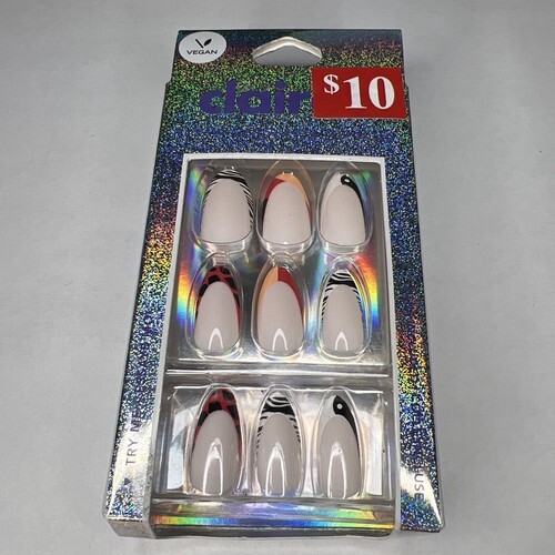 24pc Claire's Fake False Press On Glue On Vegan Animal Ying Yang Print