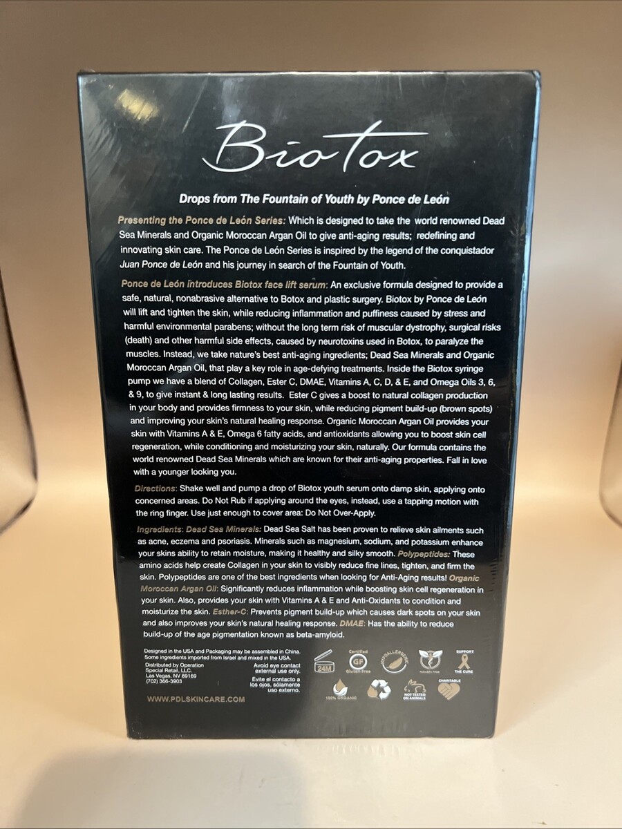 Organic Ponce de Leon Biotox Face Lift Serum With Dead Sea Minerals Cruelty Free. New sealed box perfect for a gift
