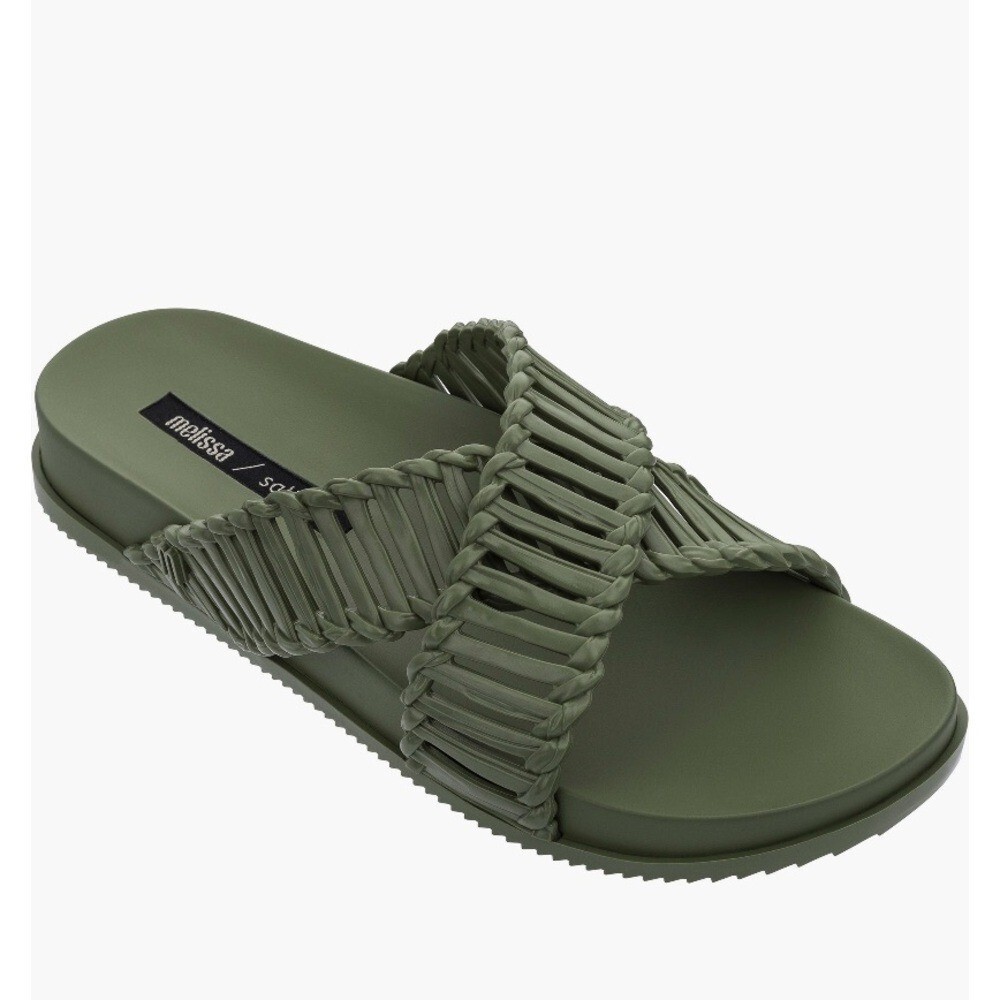 Melissa x Salinas Cosmic II Slide Sandal, Size 9, Dark Green Moss, NWT