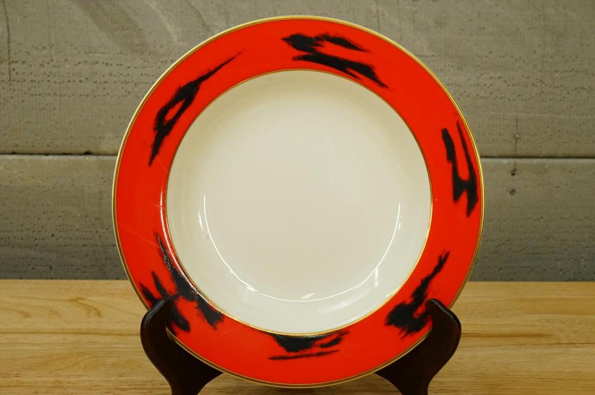 Mikasa China Negora Red Pattern Gold Trim Rim Soup Bowls 4PC Lot 8-5/8" across. Signed on the base. Crisp and clean condition.