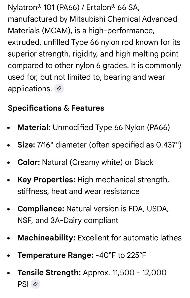4 pieces, 4 feet each, 16 feet total, Mitsubishi Chemical Advanced Materials, nylon 101 PA66, 7/16 inch, 11mm diameter, natural color rod