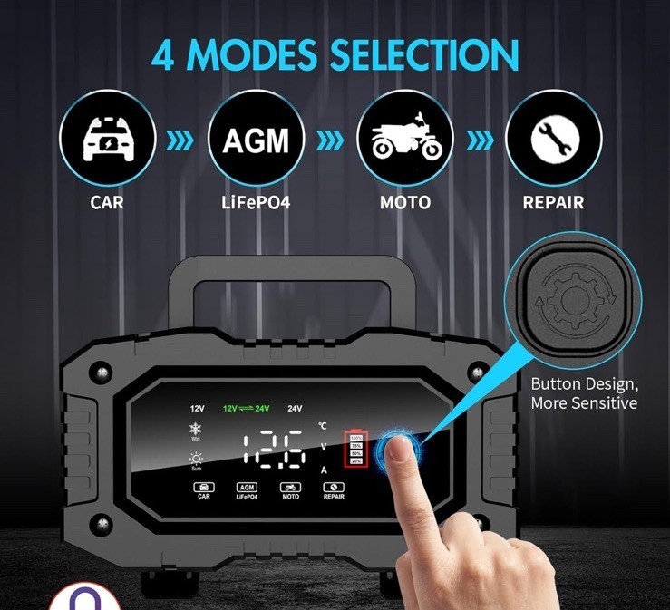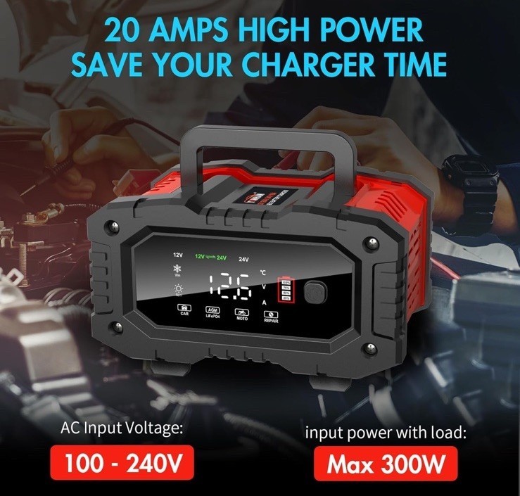 YONHAN 20A Automatic Battery Charger - 12V/24V LiFePO4 & Lead Acid Maintainer