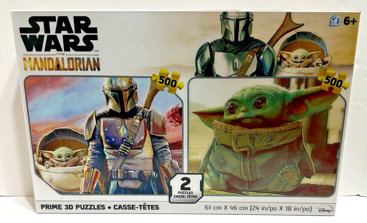 Prime 3D Star Wars The Mandalorian-Prime 3D Puzzles-Two 500 Puzzles Lenticular 3D Effect - Brand New
