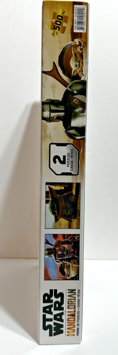 These two 500 piece puzzles have a Lenticular 3D Effect. This manufacturer uses advanced 3D printing technology to bring Mandalorian and Grogu to life. The lenticular puzzle effect creates stunning depth and motion, making these Star Wars Characters Mandalorian and Grogu realistic and vibrant.
