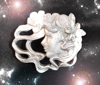 Sterling Art Nouveau Goddess pin · 1" 2"