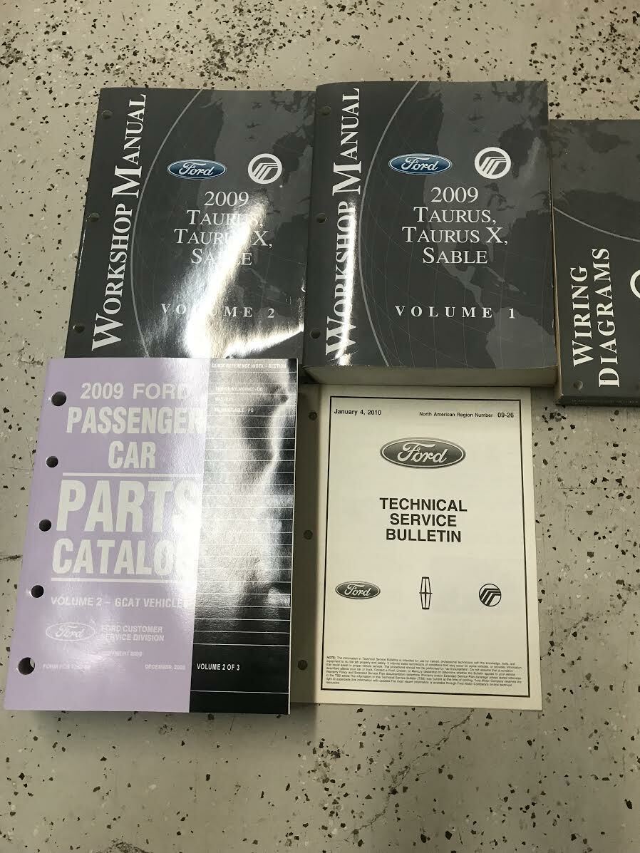 2009 Ford Taurus/Mercury Sable/Taurus X Factory Service Manual 2 Volume Set, Bollettino di servizi tecnici, Manuale del catalogo delle parti e Manuale dei diagrammi di cablaggio.