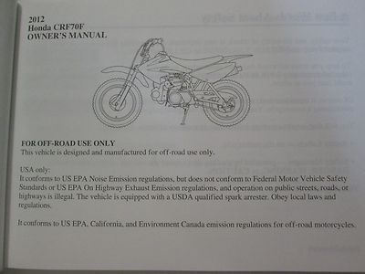 2012 Honda CRF70F CRF 70 F Owners Manual and 49 similar items