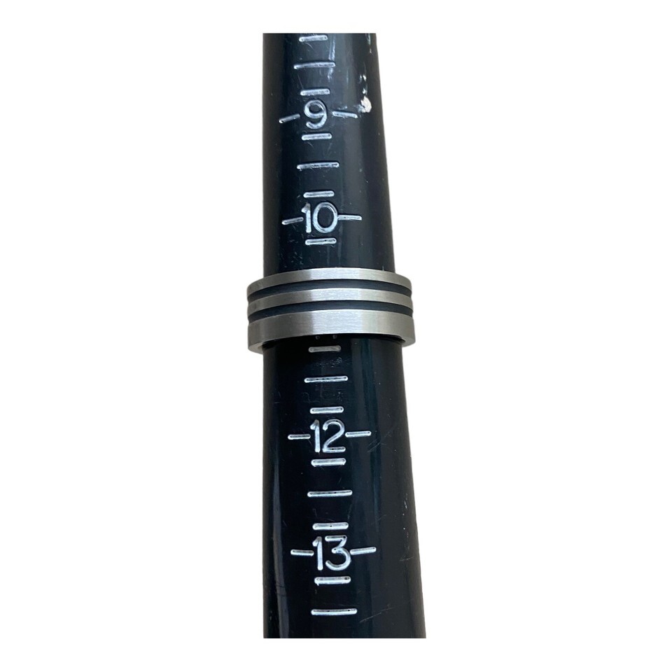 Titanium Ring 8mm Grooved Brushed & Polished Black Stripe Band Size 11