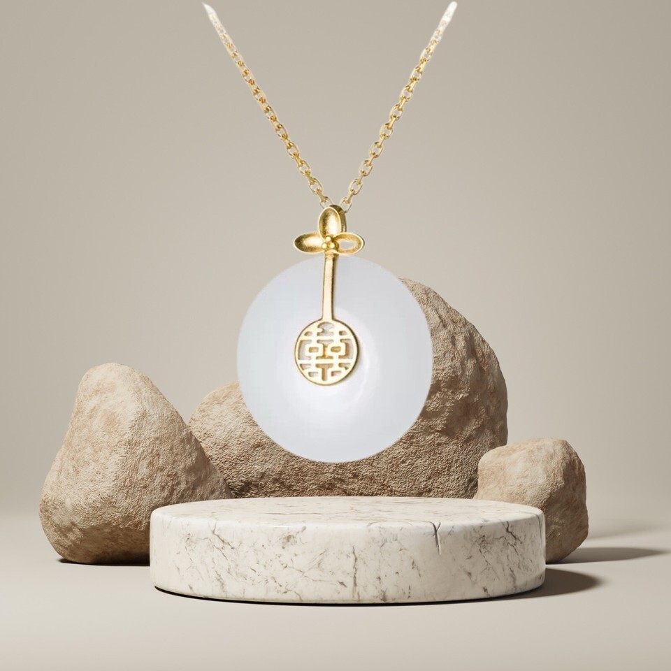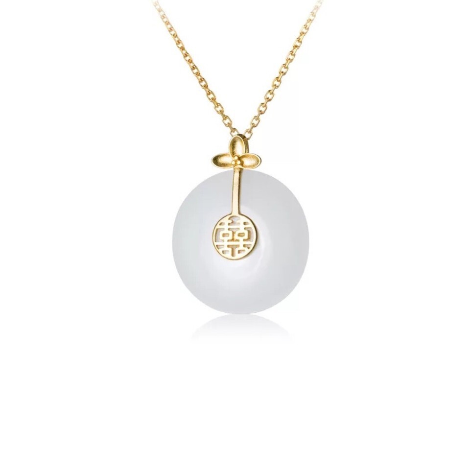 White Jade Necklace 14K Gold Over 925 Sterling Silver Dainty Gratitude Charm