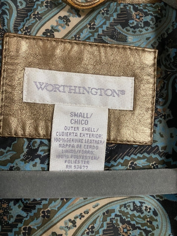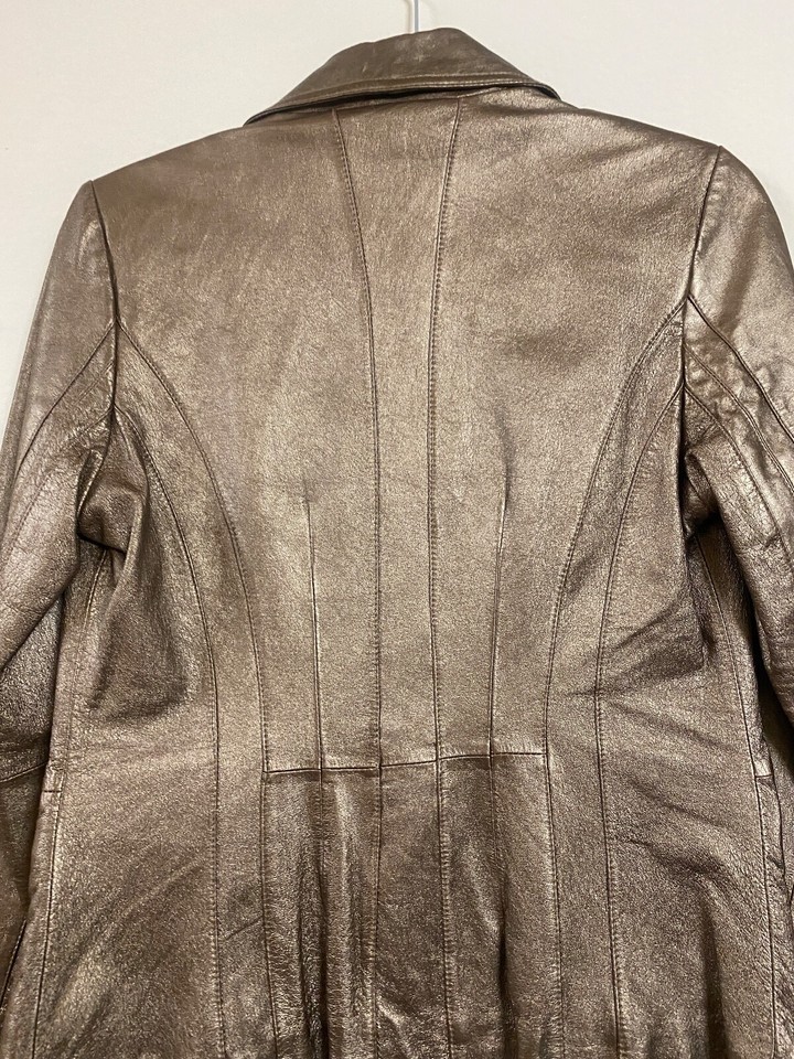 Women’s Metallic Gold Leather Blazer Jacket Size Small Genuine Luxe