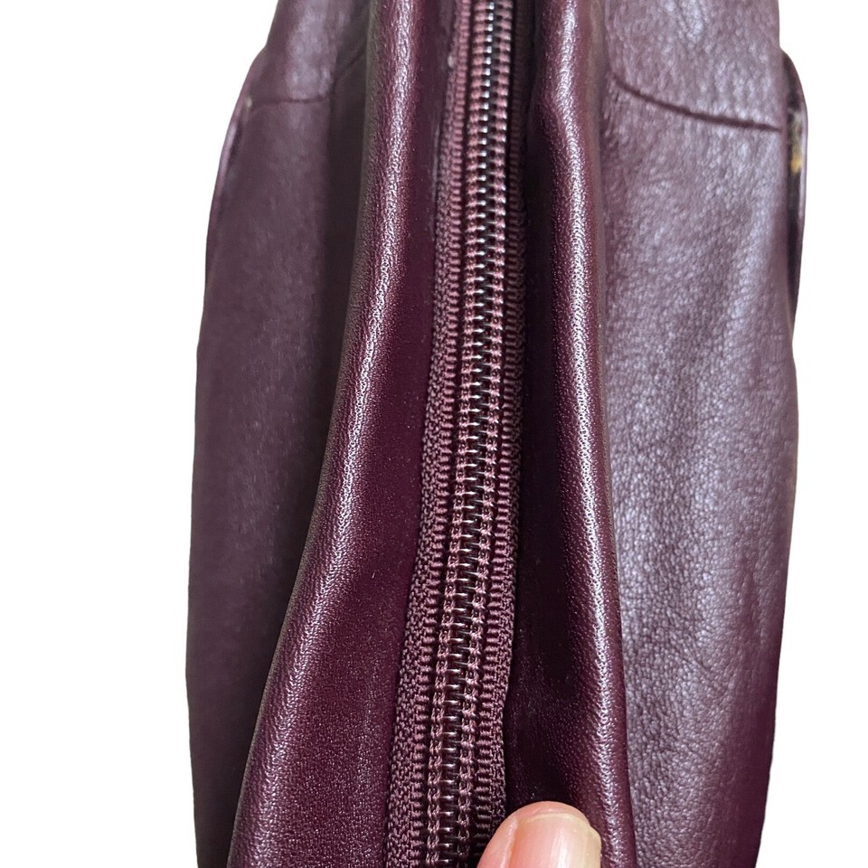 Burgundy Genuine Leather Crossbody Bag 14"x8" Shoulder Purse Zip Top