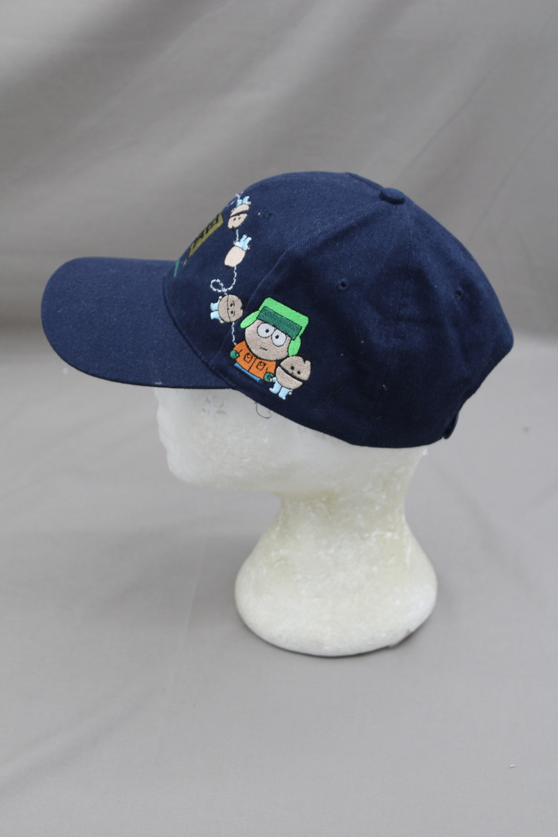 Up for sale is a vintage South Park hat. It has a blue base colour. The front of the hat has the South Park sign stitched in with Ike flying over top of it. Each side of the hat has a graphic of Kyle and Ike stitched in. What a great hat do not miss out on it.