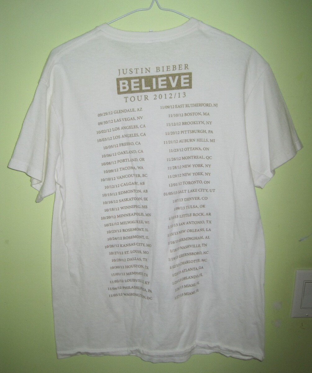 Justin Bieber BELIEVE Tour 2012/2013 Concert Double Sided White Shirt Sz Medium