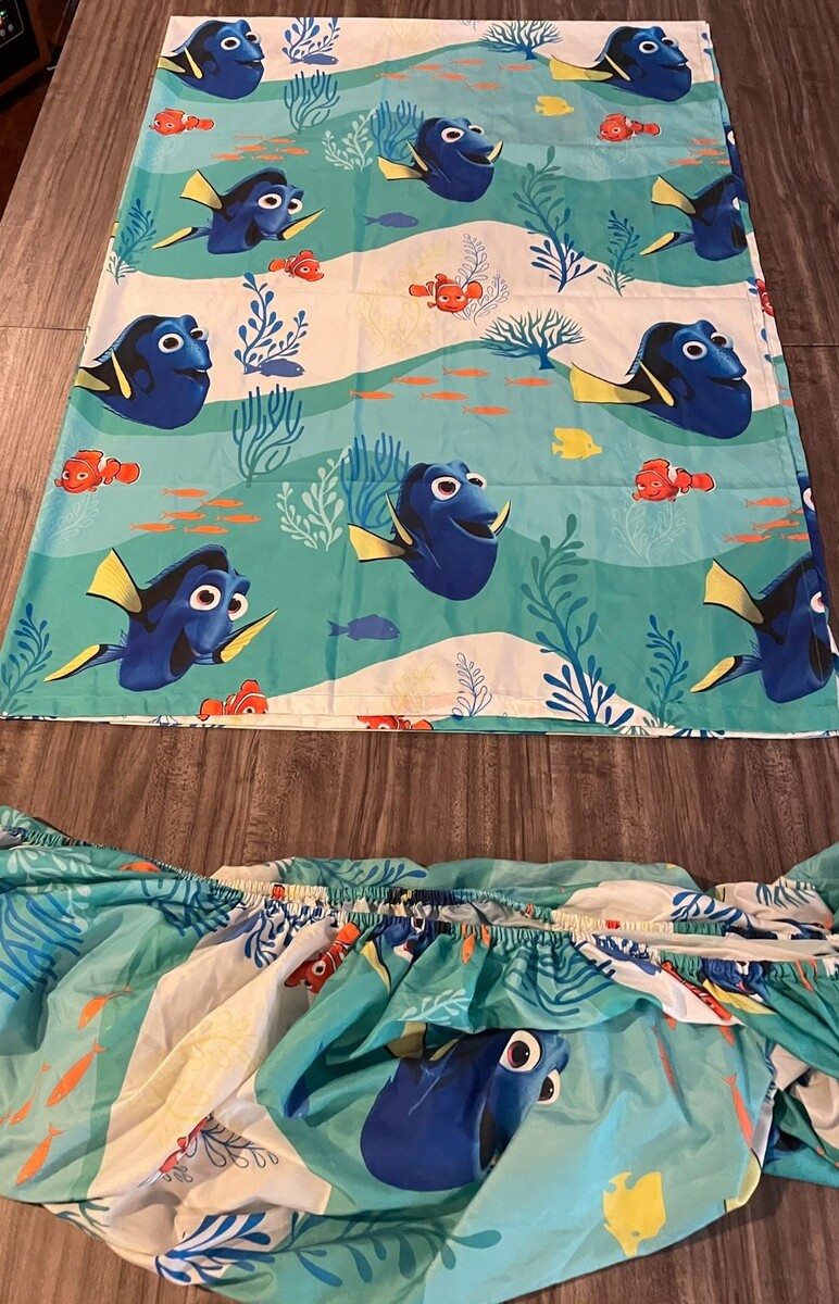 This is a WALT DISNEY FINDING DORY NEMO TWIN SIZE SHEET SET. It is in great condition (No Tears, Stains, Holes). It is CLEAN! It includes the Flat Sheet and the Fitted Sheet. Combine auctions to save on shipping. AG