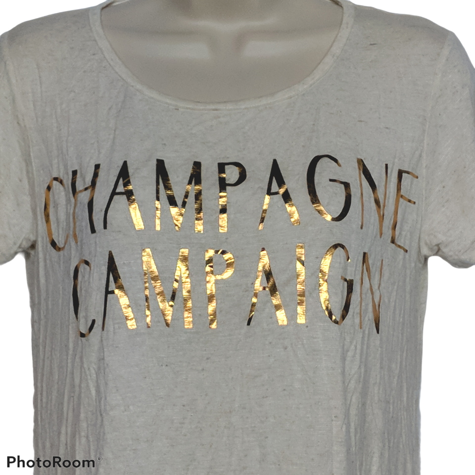 Miami Champagne Campaign Spellout T-Shirt XS Metallic Scoop Neck Short Sleeve