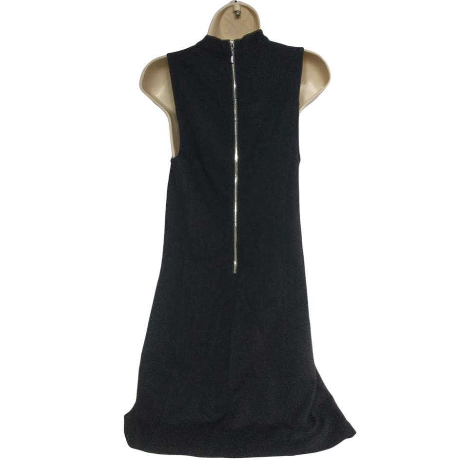 Kensie Shift Dress Size Small Black Floral Embroidered Sleeveless V Neck Zip Up