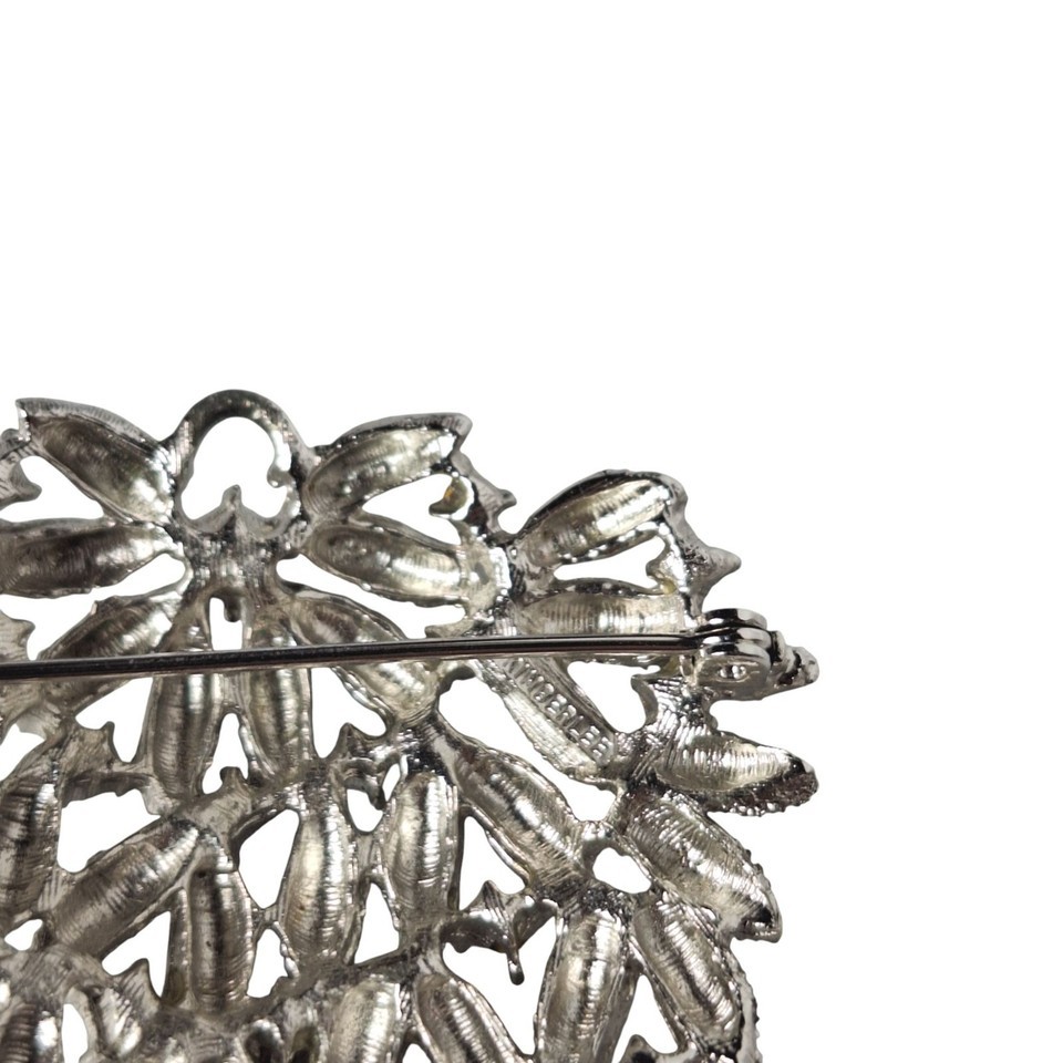 Signed Kimberlee Vtg Brooch Pin Silver Tone Rhinestone Large Grape Cluster Leaf