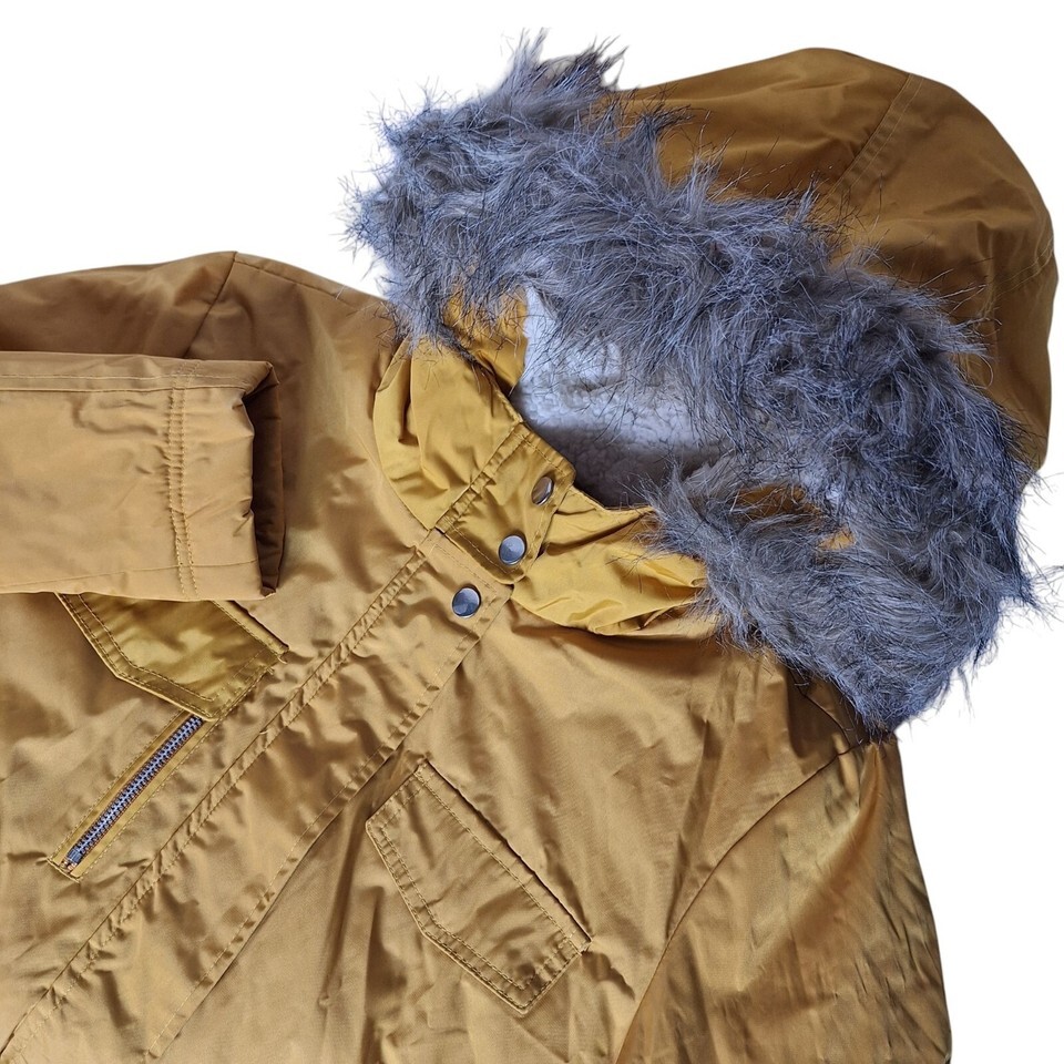 New Look Womens Parka Coat Size Small Gold Zip Up Hooded Faux Fur Winter