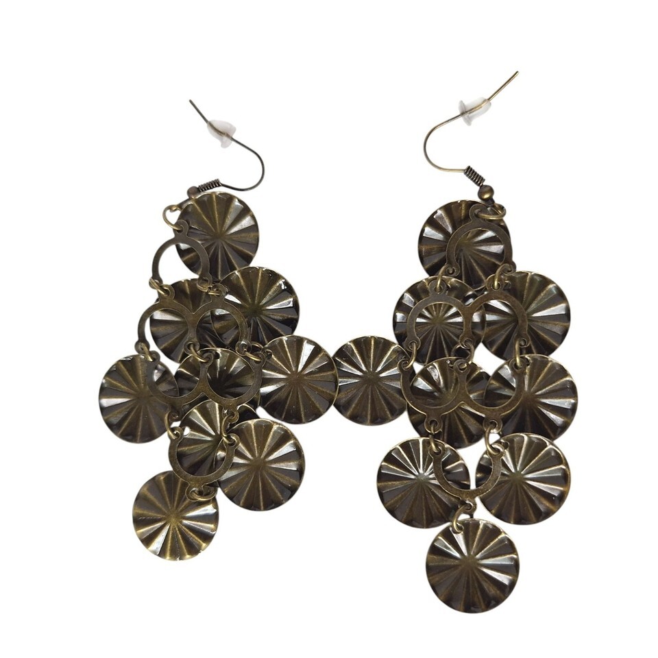 Vintage Bronze-Tone Dangle Earrings With Textured Circular Discs Boho Jewelry