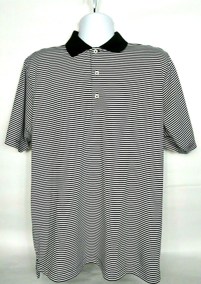 Pre-loved Partner F & G Tech Men's Golf Polo Size Large Black White Striped ...