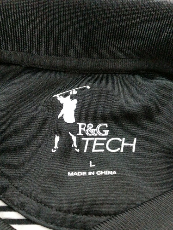 F G Tech Men's Golf Polo Size Large Black White Striped Greenbriar Hills CC