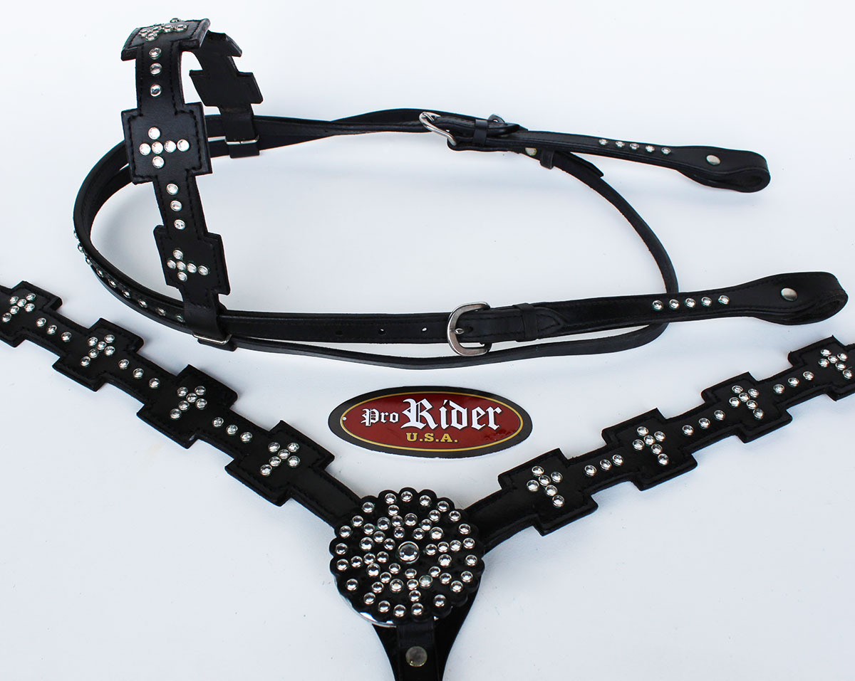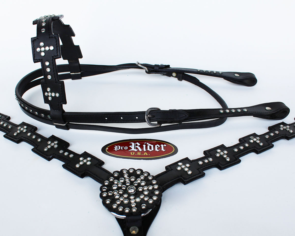 Show Tack Bridle Horse Western Leather Rodeo Headstall Breast Collar 8572
