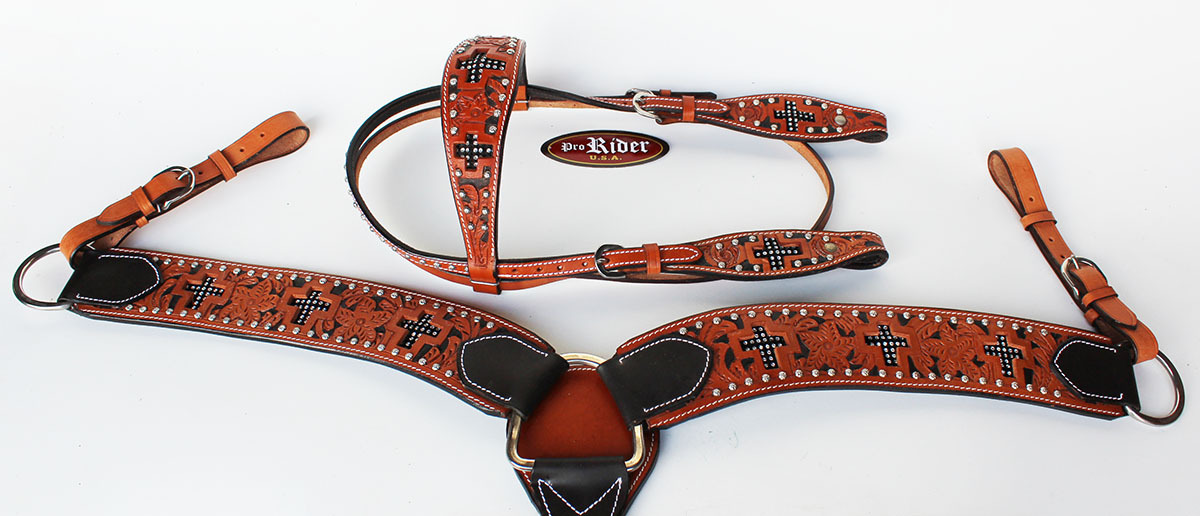 Show Tack Bridle Horse Western Leather Rodeo Headstall Breast Collar 8584