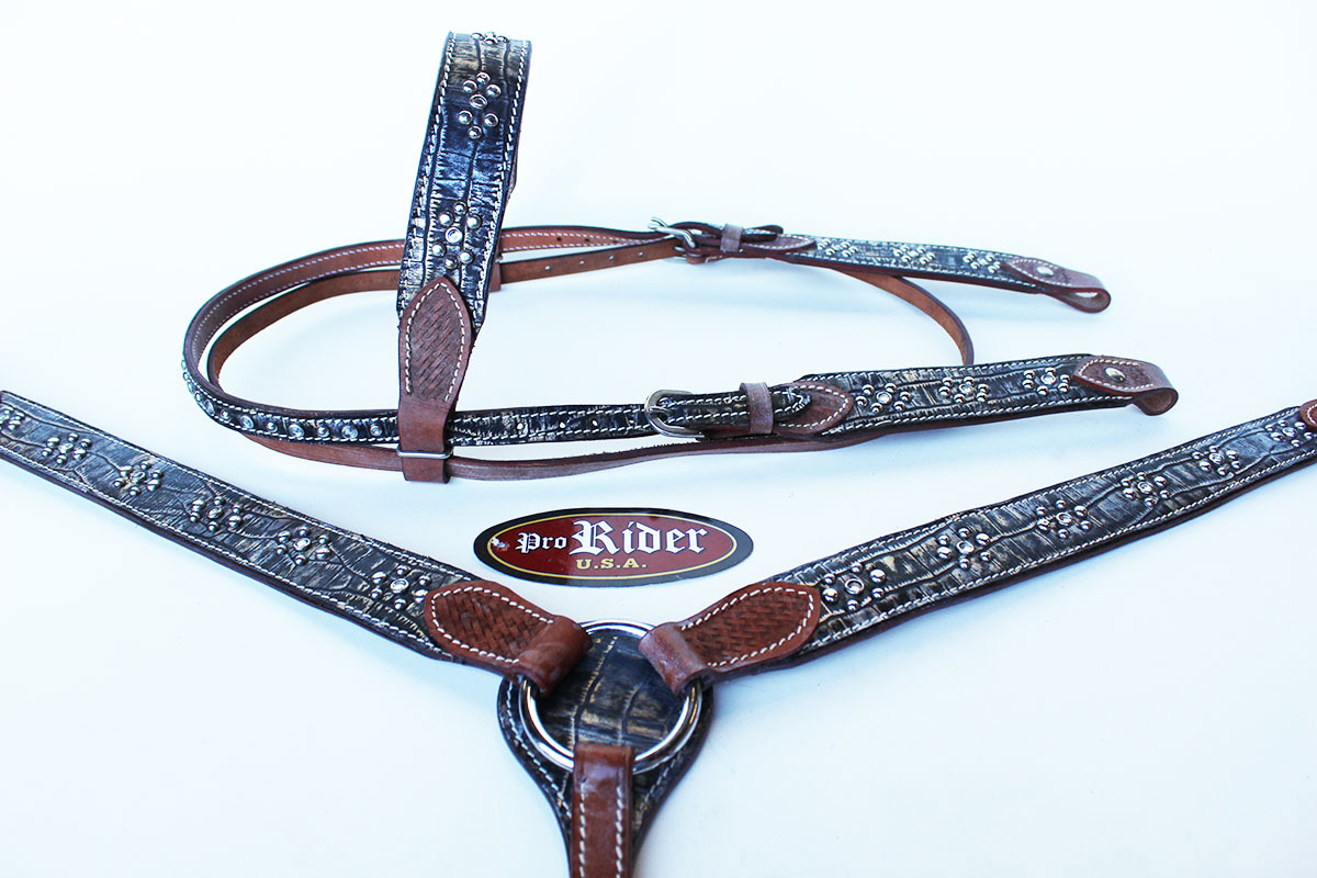 Show Tack Bridle Horse Western Leather Rodeo Headstall Breast Collar 8507