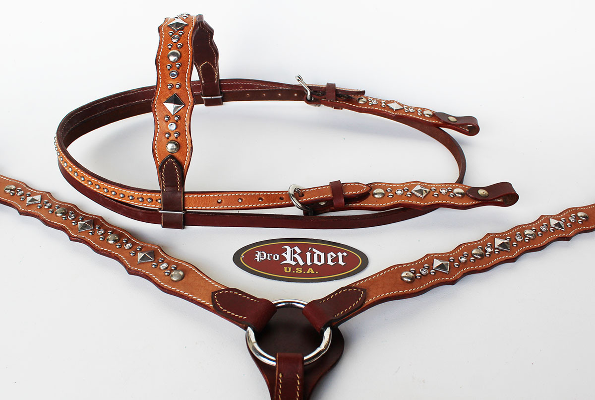 Show Tack Bridle Horse Western Leather Rodeo Headstall Breast Collar 8581