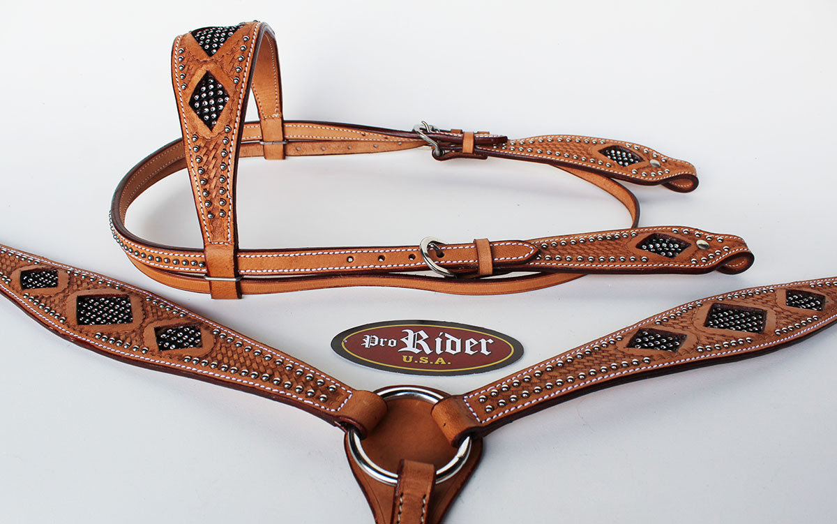 Show Tack Bridle Horse Western Leather Rodeo Headstall Breast Collar 8582