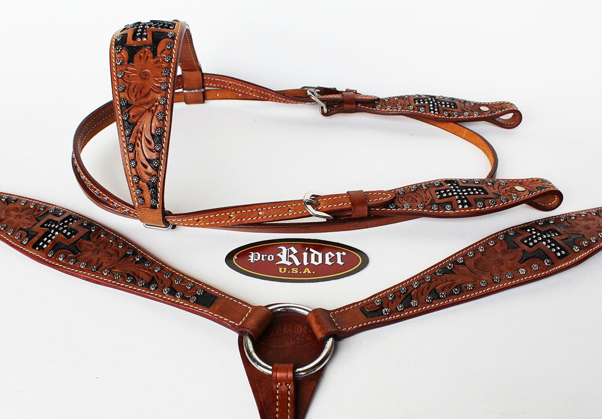 Show Tack Bridle Horse Western Leather Rodeo Headstall Breast Collar 8586
