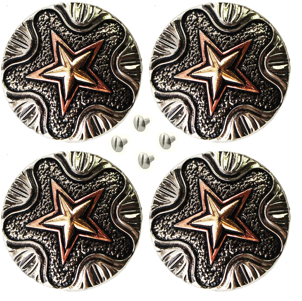 Set of 4 Conchos Western Saddle Tack 1-1/4" Engraved Copper Lone Star Co560