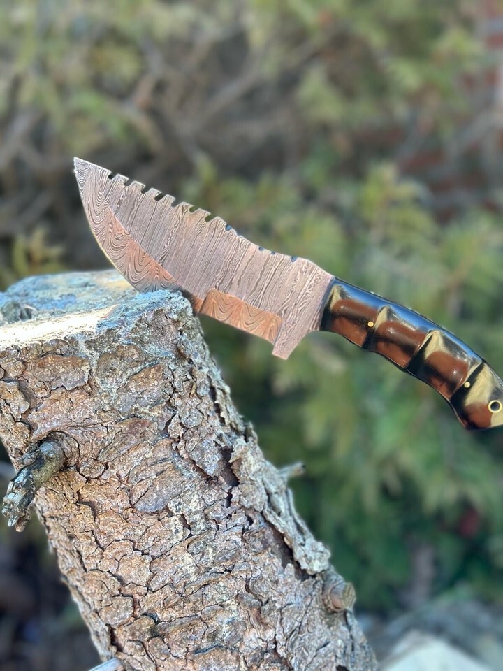 Damascus Hunting Skinning Tracker Knife Buck Deer Hunter Tactical Multi Purpose