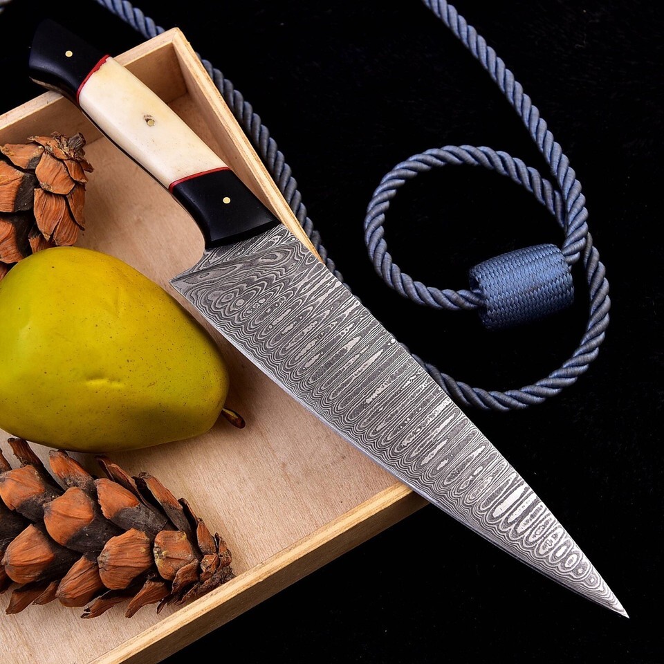 HANDMADE DAMASCUS STEEL CHEF KNIFE KITCHEN BONING KNIFE camel bone handle