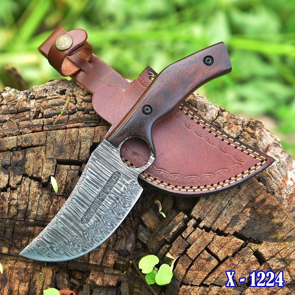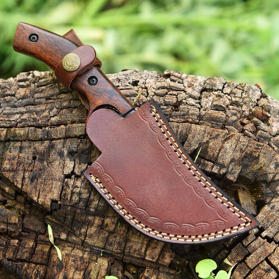 Paired with a durable handle for a secure grip, this knife comes complete with a custom-fit leather sheath for safe carry and storage. Ideal for collectors, outdoor enthusiasts, or as a standout gift.