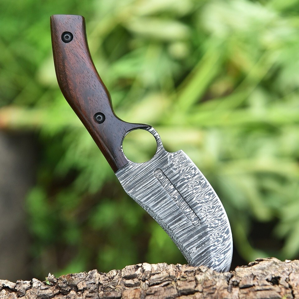 Crafted with precision and tradition, this handmade Damascus steel knife features a 4-inch forged blade and a 9-inch overall length. The blade showcases the iconic Damascus pattern, known for its strength, sharpness, and beautiful layered design.